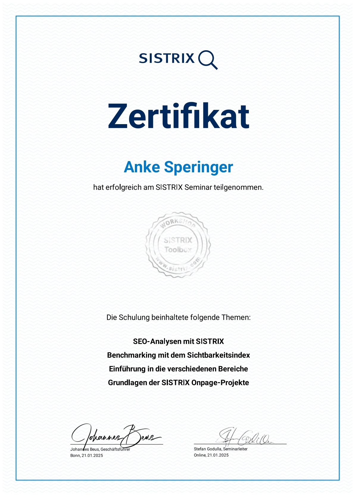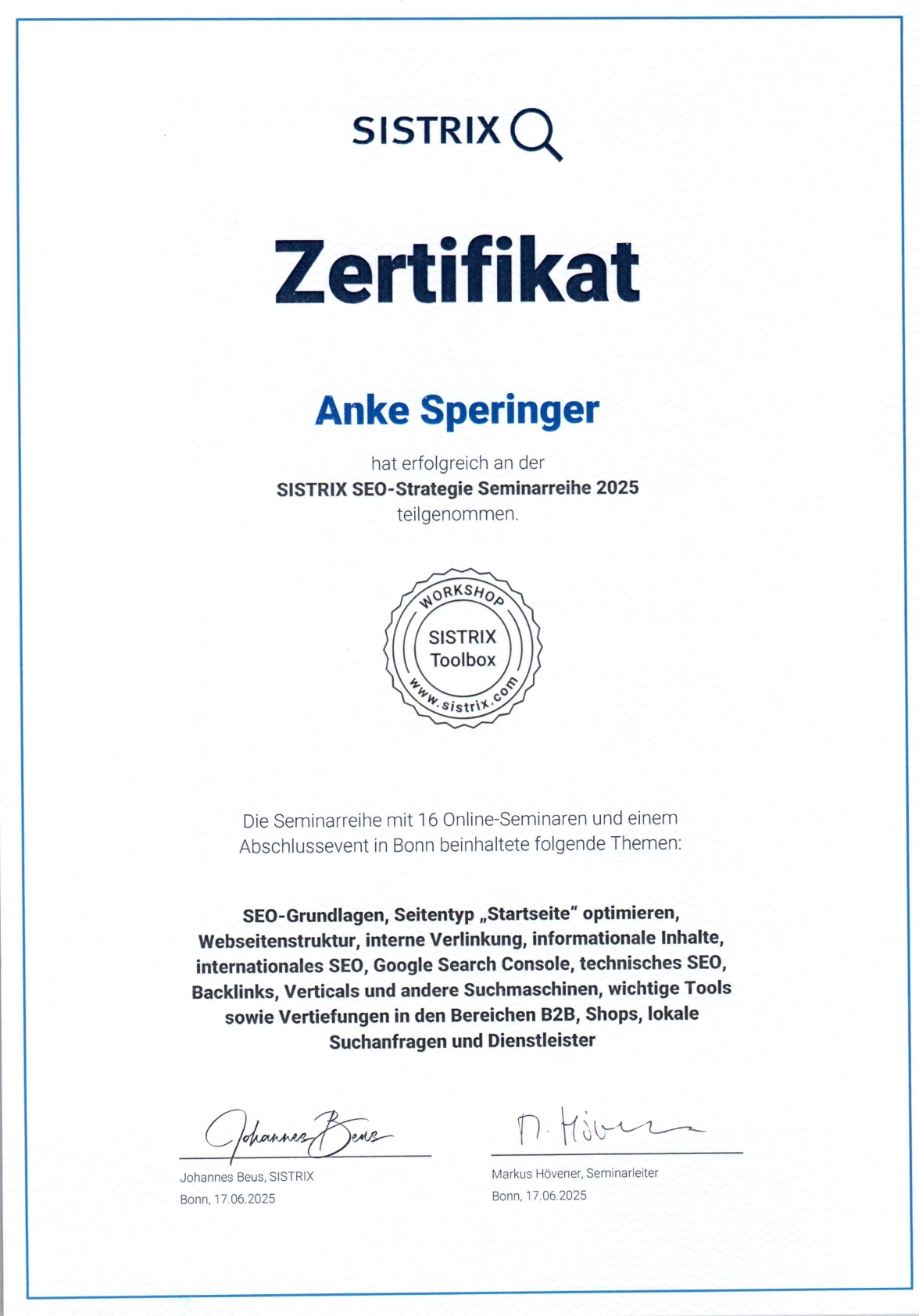 Online-Marketing, SEO & KI verändert sich jeden Tag. Deswegen bleibe ich am Puls der Zeit und bilde mich stetig – mehrere Stunden pro Woche – weiter: durch Messen, Konferenzen, Seminare und Vorträge.